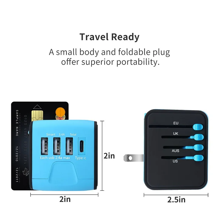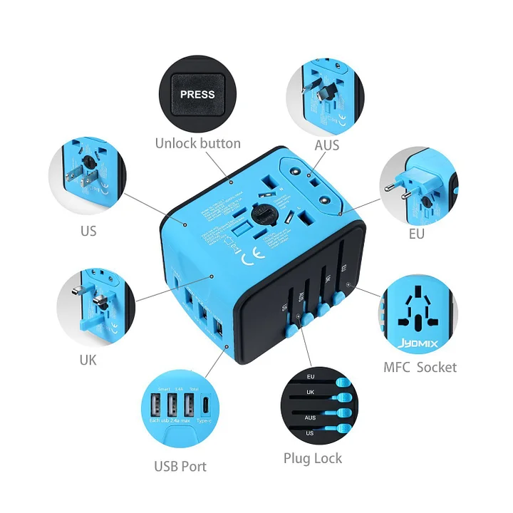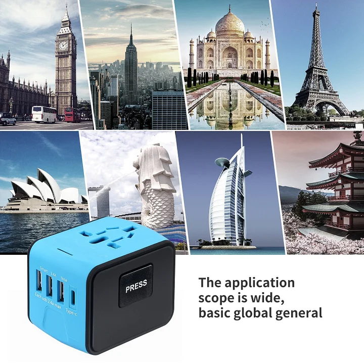 All In One Universal USB Travel Power Adapter With 3 USB Port And Type-C International Wall Charger Worldwide AC Power Plug 8 Pin AC Socket For Multi-nation Travel UK, EU, AU, Asia Over 200 Countries